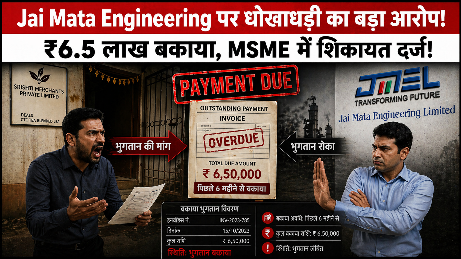 इतना ही नहीं, भुगतान ना देने के लिए Jai Mata Engineering Pvt Ltd अब यह बहाना भी बना रही है कि “आपका माल खराब था”, जबकि Srishti Merchant Pvt Ltd का कहना है कि माल पूरी तरह सही था और पहले भी उसी माल के साथ कारोबार होता रहा है।