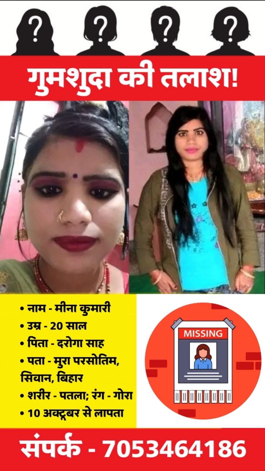 परिवार ने आम जनता से अपील की है कि अगर किसी को भी मीना कुमारी के बारे में कोई जानकारी मिले, तो कृपया दिए गए नंबर 70534 64186 पर संपर्क करें — हर छोटी-बड़ी जानकारी मायने रखती है। हर सूचना परिवार के लिए बेहद महत्वपूर्ण हो सकती है।